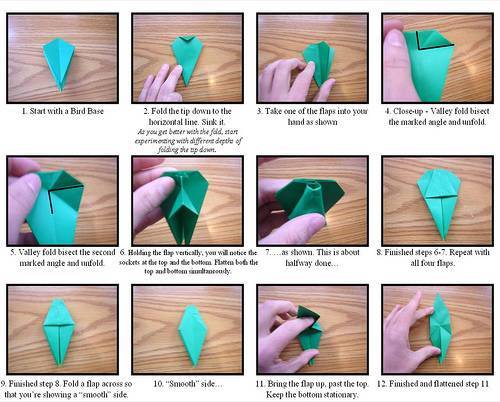 Wie man Origami macht, wird durch die Diagramme erklärt, die Schritt für Schritt die Technik des Papierfaltens erklären. Diese Kunst hat auf der ganzen Welt viele Anhänger, die ihre Techniken bis zum höchsten Detailpunkt und Perfektion perfektioniert haben.