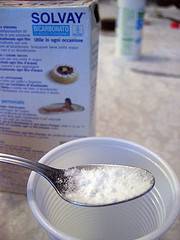 - Löse 2 Teelöffel Natriumkarbonat in ein wenig Wasser